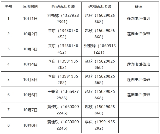 10.军士学院国庆节、中秋节值班安排: